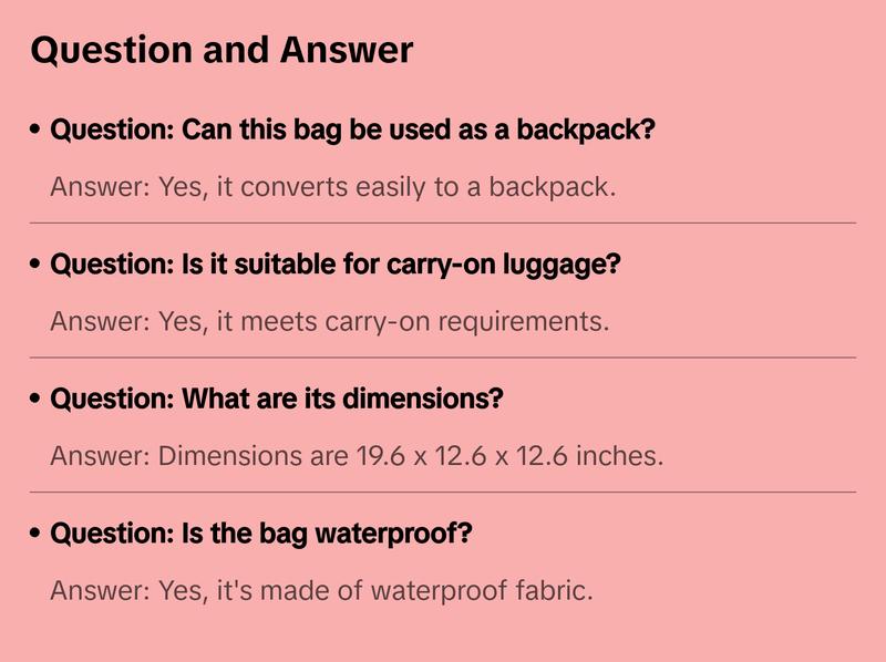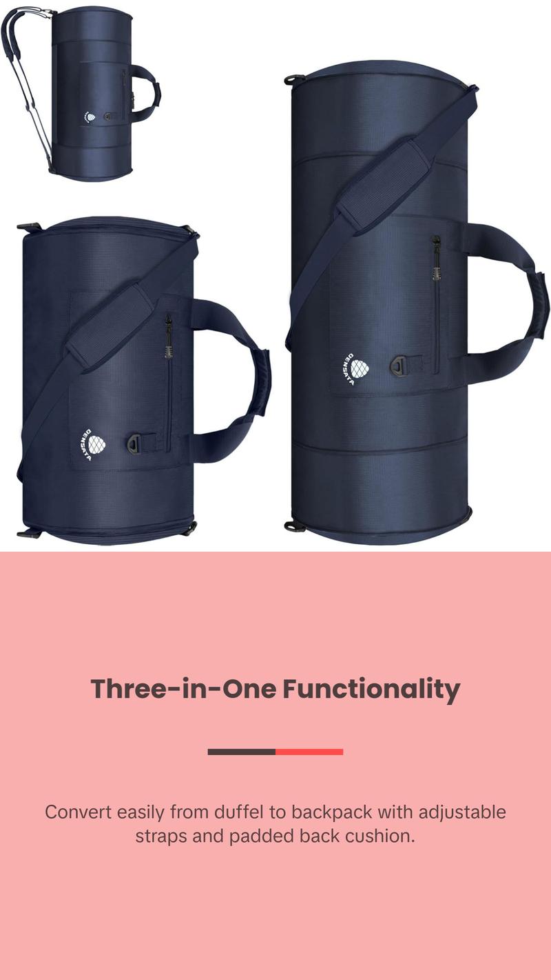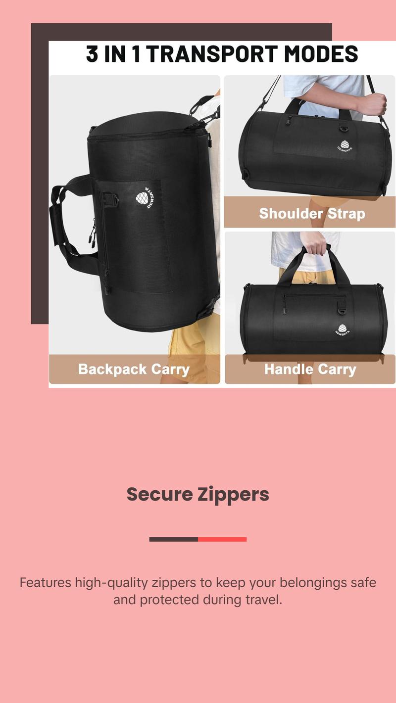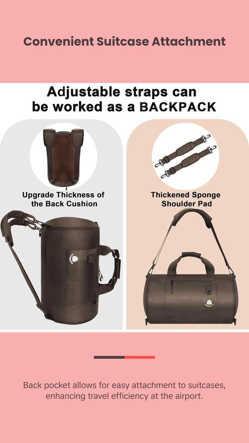 - 【 3 in 1 Multi-function Travel Bag 】In addition to normal hand and shoulder bag functions, this travel duffel bag has two adjustable shoulder straps and thicken back cushion that can be easily converted into a backpack. It can be used as a duffel bag for traveling, a tote bag for gym, a overnight weekender bag, a carry-on luggage. It's a ideal companion for personal or business trips.