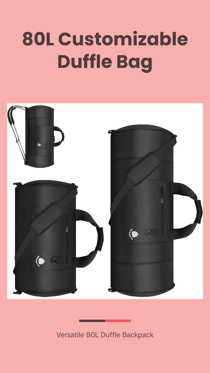 Customizable Travel Duffle Bag | 80L Sports Gym Bag | Expandable Duffle Backpack | Overnight Bag | Carry on Bag